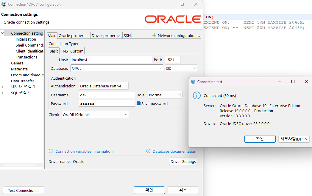 ORA-01017: ์ฌ์ฉ์๋ช /๋น๋ฐ๋ฒํธ๊ฐ ๋ถ์ ํฉ, ๋ก๊ทธ์จ ํ ์ ์์ต๋๋ค. ๋ฐ์ดํฐ๋ฒ ์ด์ค ์์ ์๊ฐ, ์ค์ต์ ์ฌ์ฉํ DB๋ ์ค๋ผํด์ด๊ณ , ๋ง์ 54ํผ์ผํธ ๊ตฌ๊ฐ์ ์ ๋๊ฒจ ์ค์น๋ฅผ ์ ๋ง๋ฌด๋ฆฌํ๋ค. ํ์ง๋ง... ์ฌ์ฉ์ ๋ก